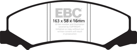 EBC Yellowstuff is an aramid fibre based brake compound with high brake effect form cold and is possibly one of the first ever compounds that can be used for STREET AND TRACK DRIVING. These pads do not require warm up but do get even stronger under the heat of hard driving. These are not a low dust pad and if your desire is for a low dust premium street use pad, you should consider EBC Redstuff.When considering full race use, Yellowstuff has been a strong favourite, having been used for two years in the Swedish Camaro Cup and at numerous other race events where a stock caliper system is fitted.It is also the choice of 90-percent of the Mazda MX5 Miata competitors in the UK race series and has an unblemished record as rotor friendly track pad for vehicles up to 2000 kgs weight or 200 BHP.In the USA the SCCA and NASA drivershave been testing Yellowstuff with feedback and good reports POURING in from a 543 test driver major market proving event with these groups. Read that figure again 543 test drivers.There is no guesswork here.