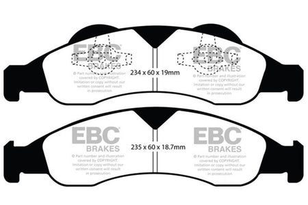 EBC Yellowstuff is an aramid fibre based brake compound with high brake effect form cold and is possibly one of the first ever compounds that can be used for STREET AND TRACK DRIVING. These pads do not require warm up but do get even stronger under the heat of hard driving. These are not a low dust pad and if your desire is for a low dust premium street use pad, you should consider EBC Redstuff.When considering full race use, Yellowstuff has been a strong favourite, having been used for two years in the Swedish Camaro Cup and at numerous other race events where a stock caliper system is fitted.It is also the choice of 90-percent of the Mazda MX5 Miata competitors in the UK race series and has an unblemished record as rotor friendly track pad for vehicles up to 2000 kgs weight or 200 BHP.In the USA the SCCA and NASA drivershave been testing Yellowstuff with feedback and good reports POURING in from a 543 test driver major market proving event with these groups. Read that figure again 543 test drivers.There is no guesswork here.