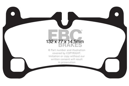 EBC Yellowstuff is an aramid fibre based brake compound with high brake effect form cold and is possibly one of the first ever compounds that can be used for STREET AND TRACK DRIVING. These pads do not require warm up but do get even stronger under the heat of hard driving. These are not a low dust pad and if your desire is for a low dust premium street use pad, you should consider EBC Redstuff.When considering full race use, Yellowstuff has been a strong favourite, having been used for two years in the Swedish Camaro Cup and at numerous other race events where a stock caliper system is fitted.It is also the choice of 90-percent of the Mazda MX5 Miata competitors in the UK race series and has an unblemished record as rotor friendly track pad for vehicles up to 2000 kgs weight or 200 BHP.In the USA the SCCA and NASA drivershave been testing Yellowstuff with feedback and good reports POURING in from a 543 test driver major market proving event with these groups. Read that figure again 543 test drivers.There is no guesswork here.