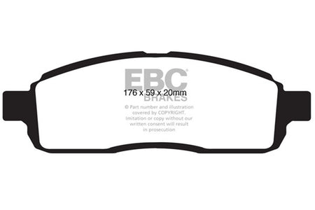 EBC Yellowstuff is an aramid fibre based brake compound with high brake effect form cold and is possibly one of the first ever compounds that can be used for STREET AND TRACK DRIVING. These pads do not require warm up but do get even stronger under the heat of hard driving. These are not a low dust pad and if your desire is for a low dust premium street use pad, you should consider EBC Redstuff.When considering full race use, Yellowstuff has been a strong favourite, having been used for two years in the Swedish Camaro Cup and at numerous other race events where a stock caliper system is fitted.It is also the choice of 90-percent of the Mazda MX5 Miata competitors in the UK race series and has an unblemished record as rotor friendly track pad for vehicles up to 2000 kgs weight or 200 BHP.In the USA the SCCA and NASA drivershave been testing Yellowstuff with feedback and good reports POURING in from a 543 test driver major market proving event with these groups. Read that figure again 543 test drivers.There is no guesswork here.
