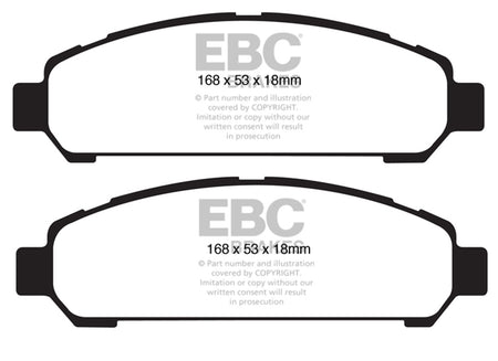 EBC Yellowstuff is an aramid fibre based brake compound with high brake effect form cold and is possibly one of the first ever compounds that can be used for STREET AND TRACK DRIVING. These pads do not require warm up but do get even stronger under the heat of hard driving. These are not a low dust pad and if your desire is for a low dust premium street use pad, you should consider EBC Redstuff.When considering full race use, Yellowstuff has been a strong favourite, having been used for two years in the Swedish Camaro Cup and at numerous other race events where a stock caliper system is fitted.It is also the choice of 90-percent of the Mazda MX5 Miata competitors in the UK race series and has an unblemished record as rotor friendly track pad for vehicles up to 2000 kgs weight or 200 BHP.In the USA the SCCA and NASA drivershave been testing Yellowstuff with feedback and good reports POURING in from a 543 test driver major market proving event with these groups. Read that figure again 543 test drivers.There is no guesswork here.
