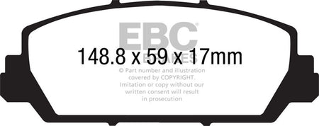 EBC Yellowstuff is an aramid fibre based brake compound with high brake effect form cold and is possibly one of the first ever compounds that can be used for STREET AND TRACK DRIVING. These pads do not require warm up but do get even stronger under the heat of hard driving. These are not a low dust pad and if your desire is for a low dust premium street use pad, you should consider EBC Redstuff.When considering full race use, Yellowstuff has been a strong favourite, having been used for two years in the Swedish Camaro Cup and at numerous other race events where a stock caliper system is fitted.It is also the choice of 90-percent of the Mazda MX5 Miata competitors in the UK race series and has an unblemished record as rotor friendly track pad for vehicles up to 2000 kgs weight or 200 BHP.In the USA the SCCA and NASA drivershave been testing Yellowstuff with feedback and good reports POURING in from a 543 test driver major market proving event with these groups. Read that figure again 543 test drivers.There is no guesswork here.
