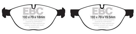 EBC Yellowstuff is an aramid fibre based brake compound with high brake effect form cold and is possibly one of the first ever compounds that can be used for STREET AND TRACK DRIVING. These pads do not require warm up but do get even stronger under the heat of hard driving. These are not a low dust pad and if your desire is for a low dust premium street use pad, you should consider EBC Redstuff.When considering full race use, Yellowstuff has been a strong favourite, having been used for two years in the Swedish Camaro Cup and at numerous other race events where a stock caliper system is fitted.It is also the choice of 90-percent of the Mazda MX5 Miata competitors in the UK race series and has an unblemished record as rotor friendly track pad for vehicles up to 2000 kgs weight or 200 BHP.In the USA the SCCA and NASA drivershave been testing Yellowstuff with feedback and good reports POURING in from a 543 test driver major market proving event with these groups. Read that figure again 543 test drivers.There is no guesswork here.
