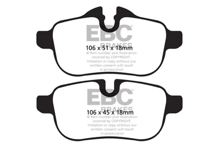 EBC Yellowstuff is an aramid fibre based brake compound with high brake effect form cold and is possibly one of the first ever compounds that can be used for STREET AND TRACK DRIVING. These pads do not require warm up but do get even stronger under the heat of hard driving. These are not a low dust pad and if your desire is for a low dust premium street use pad, you should consider EBC Redstuff.When considering full race use, Yellowstuff has been a strong favourite, having been used for two years in the Swedish Camaro Cup and at numerous other race events where a stock caliper system is fitted.It is also the choice of 90-percent of the Mazda MX5 Miata competitors in the UK race series and has an unblemished record as rotor friendly track pad for vehicles up to 2000 kgs weight or 200 BHP.In the USA the SCCA and NASA drivershave been testing Yellowstuff with feedback and good reports POURING in from a 543 test driver major market proving event with these groups. Read that figure again 543 test drivers.There is no guesswork here.