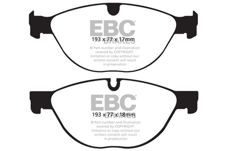 EBC Yellowstuff is an aramid fibre based brake compound with high brake effect form cold and is possibly one of the first ever compounds that can be used for STREET AND TRACK DRIVING. These pads do not require warm up but do get even stronger under the heat of hard driving. These are not a low dust pad and if your desire is for a low dust premium street use pad, you should consider EBC Redstuff.When considering full race use, Yellowstuff has been a strong favourite, having been used for two years in the Swedish Camaro Cup and at numerous other race events where a stock caliper system is fitted.It is also the choice of 90-percent of the Mazda MX5 Miata competitors in the UK race series and has an unblemished record as rotor friendly track pad for vehicles up to 2000 kgs weight or 200 BHP.In the USA the SCCA and NASA drivershave been testing Yellowstuff with feedback and good reports POURING in from a 543 test driver major market proving event with these groups. Read that figure again 543 test drivers.There is no guesswork here.