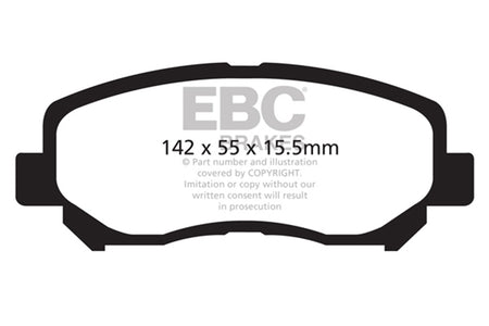EBC Yellowstuff is an aramid fibre based brake compound with high brake effect form cold and is possibly one of the first ever compounds that can be used for STREET AND TRACK DRIVING. These pads do not require warm up but do get even stronger under the heat of hard driving. These are not a low dust pad and if your desire is for a low dust premium street use pad, you should consider EBC Redstuff.When considering full race use, Yellowstuff has been a strong favourite, having been used for two years in the Swedish Camaro Cup and at numerous other race events where a stock caliper system is fitted.It is also the choice of 90-percent of the Mazda MX5 Miata competitors in the UK race series and has an unblemished record as rotor friendly track pad for vehicles up to 2000 kgs weight or 200 BHP.In the USA the SCCA and NASA drivershave been testing Yellowstuff with feedback and good reports POURING in from a 543 test driver major market proving event with these groups. Read that figure again 543 test drivers.There is no guesswork here.