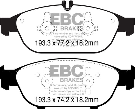 EBC Yellowstuff is an aramid fibre based brake compound with high brake effect form cold and is possibly one of the first ever compounds that can be used for STREET AND TRACK DRIVING. These pads do not require warm up but do get even stronger under the heat of hard driving. These are not a low dust pad and if your desire is for a low dust premium street use pad, you should consider EBC Redstuff.When considering full race use, Yellowstuff has been a strong favourite, having been used for two years in the Swedish Camaro Cup and at numerous other race events where a stock caliper system is fitted.It is also the choice of 90-percent of the Mazda MX5 Miata competitors in the UK race series and has an unblemished record as rotor friendly track pad for vehicles up to 2000 kgs weight or 200 BHP.In the USA the SCCA and NASA drivershave been testing Yellowstuff with feedback and good reports POURING in from a 543 test driver major market proving event with these groups. Read that figure again 543 test drivers.There is no guesswork here.
