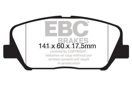 EBC Yellowstuff is an aramid fibre based brake compound with high brake effect form cold and is possibly one of the first ever compounds that can be used for STREET AND TRACK DRIVING. These pads do not require warm up but do get even stronger under the heat of hard driving. These are not a low dust pad and if your desire is for a low dust premium street use pad, you should consider EBC Redstuff.When considering full race use, Yellowstuff has been a strong favourite, having been used for two years in the Swedish Camaro Cup and at numerous other race events where a stock caliper system is fitted.It is also the choice of 90-percent of the Mazda MX5 Miata competitors in the UK race series and has an unblemished record as rotor friendly track pad for vehicles up to 2000 kgs weight or 200 BHP.In the USA the SCCA and NASA drivershave been testing Yellowstuff with feedback and good reports POURING in from a 543 test driver major market proving event with these groups. Read that figure again 543 test drivers.There is no guesswork here.