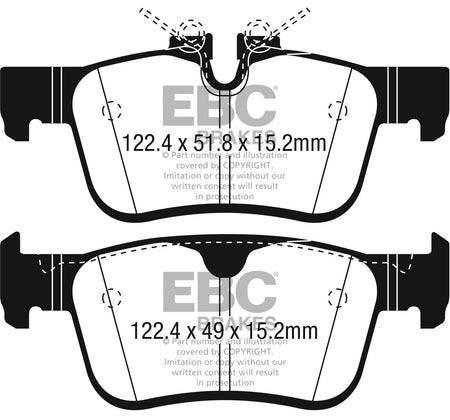EBC Yellowstuff is an aramid fibre based brake compound with high brake effect form cold and is possibly one of the first ever compounds that can be used for STREET AND TRACK DRIVING. These pads do not require warm up but do get even stronger under the heat of hard driving. These are not a low dust pad and if your desire is for a low dust premium street use pad, you should consider EBC Redstuff.When considering full race use, Yellowstuff has been a strong favourite, having been used for two years in the Swedish Camaro Cup and at numerous other race events where a stock caliper system is fitted.It is also the choice of 90-percent of the Mazda MX5 Miata competitors in the UK race series and has an unblemished record as rotor friendly track pad for vehicles up to 2000 kgs weight or 200 BHP.In the USA the SCCA and NASA drivershave been testing Yellowstuff with feedback and good reports POURING in from a 543 test driver major market proving event with these groups. Read that figure again 543 test drivers.There is no guesswork here.