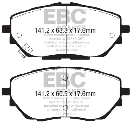 EBC Brakes Yellowstuff pads are high friction coefficient spirited street pads, track capable on import, European sport, and fast imports. For trucks and SUV vehicles Yellowstuff pads are great for towing/hauling as well as off-road use.