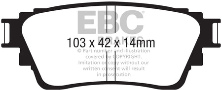 EBC Yellowstuff is an aramid fibre based brake compound with high brake effect form cold and is possibly one of the first ever compounds that can be used for STREET AND TRACK DRIVING. These pads do not require warm up but do get even stronger under the heat of hard driving. These are not a low dust pad and if your desire is for a low dust premium street use pad, you should consider EBC Redstuff.When considering full race use, Yellowstuff has been a strong favourite, having been used for two years in the Swedish Camaro Cup and at numerous other race events where a stock caliper system is fitted.It is also the choice of 90-percent of the Mazda MX5 Miata competitors in the UK race series and has an unblemished record as rotor friendly track pad for vehicles up to 2000 kgs weight or 200 BHP.In the USA the SCCA and NASA drivershave been testing Yellowstuff with feedback and good reports POURING in from a 543 test driver major market proving event with these groups. Read that figure again 543 test drivers.There is no guesswork here.