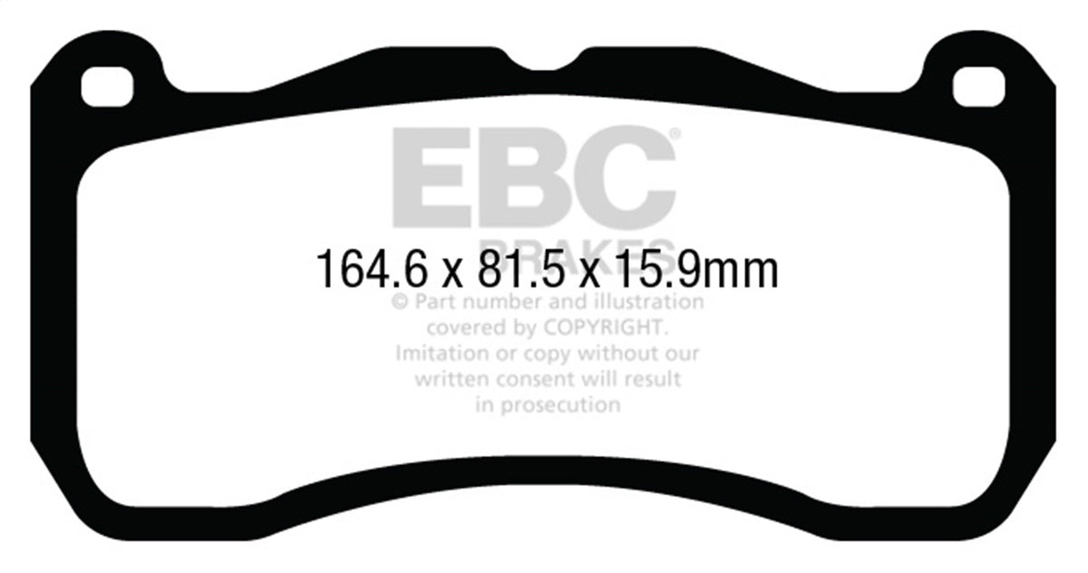 EBC Yellowstuff is an aramid fibre based brake compound with high brake effect form cold and is possibly one of the first ever compounds that can be used for STREET AND TRACK DRIVING. These pads do not require warm up but do get even stronger under the heat of hard driving. These are not a low dust pad and if your desire is for a low dust premium street use pad, you should consider EBC Redstuff.When considering full race use, Yellowstuff has been a strong favourite, having been used for two years in the Swedish Camaro Cup and at numerous other race events where a stock caliper system is fitted.It is also the choice of 90-percent of the Mazda MX5 Miata competitors in the UK race series and has an unblemished record as rotor friendly track pad for vehicles up to 2000 kgs weight or 200 BHP.In the USA the SCCA and NASA drivershave been testing Yellowstuff with feedback and good reports POURING in from a 543 test driver major market proving event with these groups. Read that figure again 543 test drivers.There is no guesswork here.